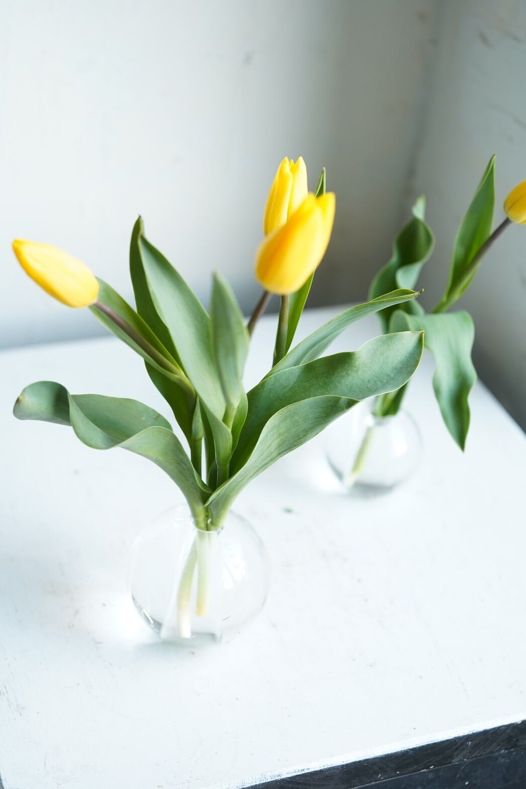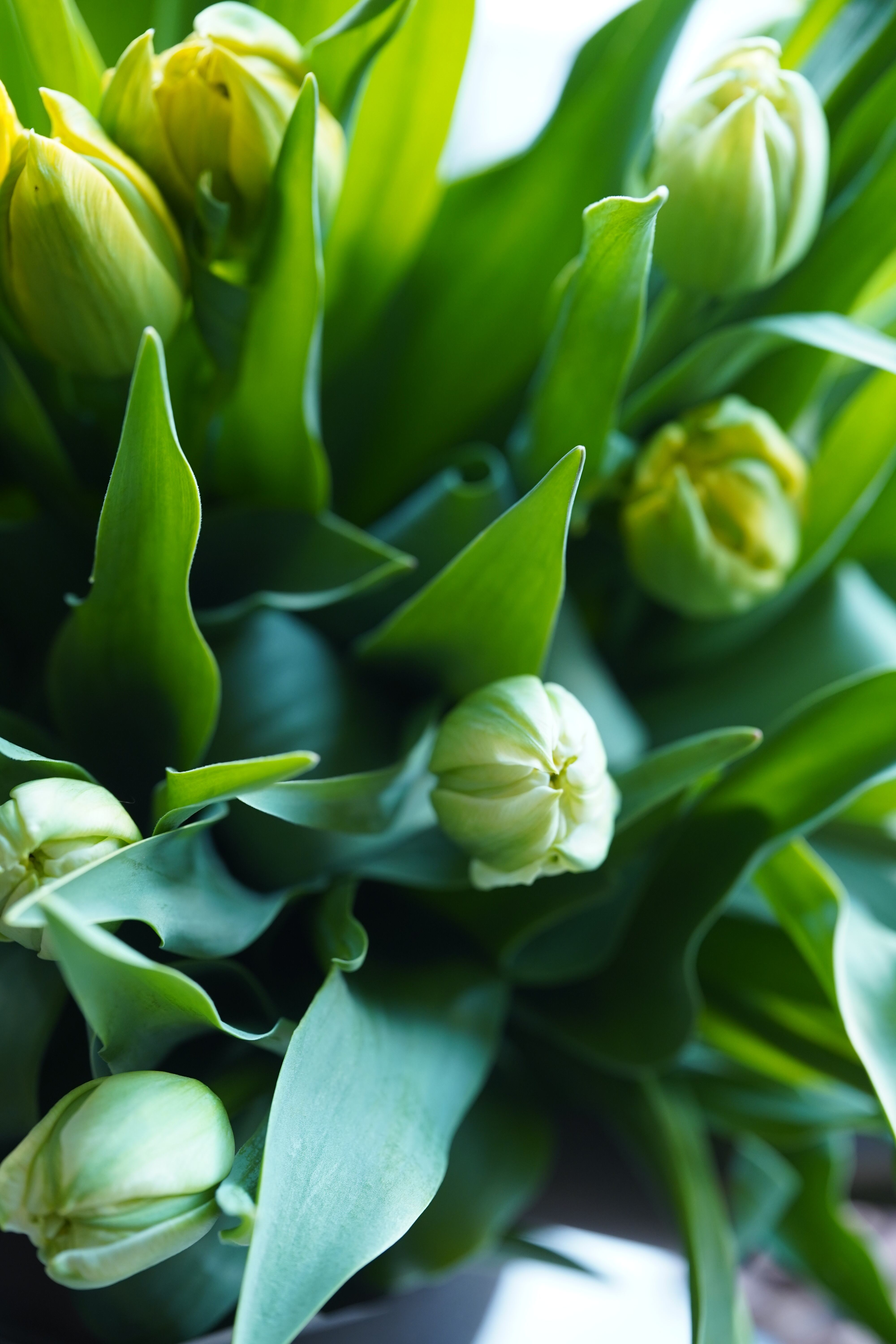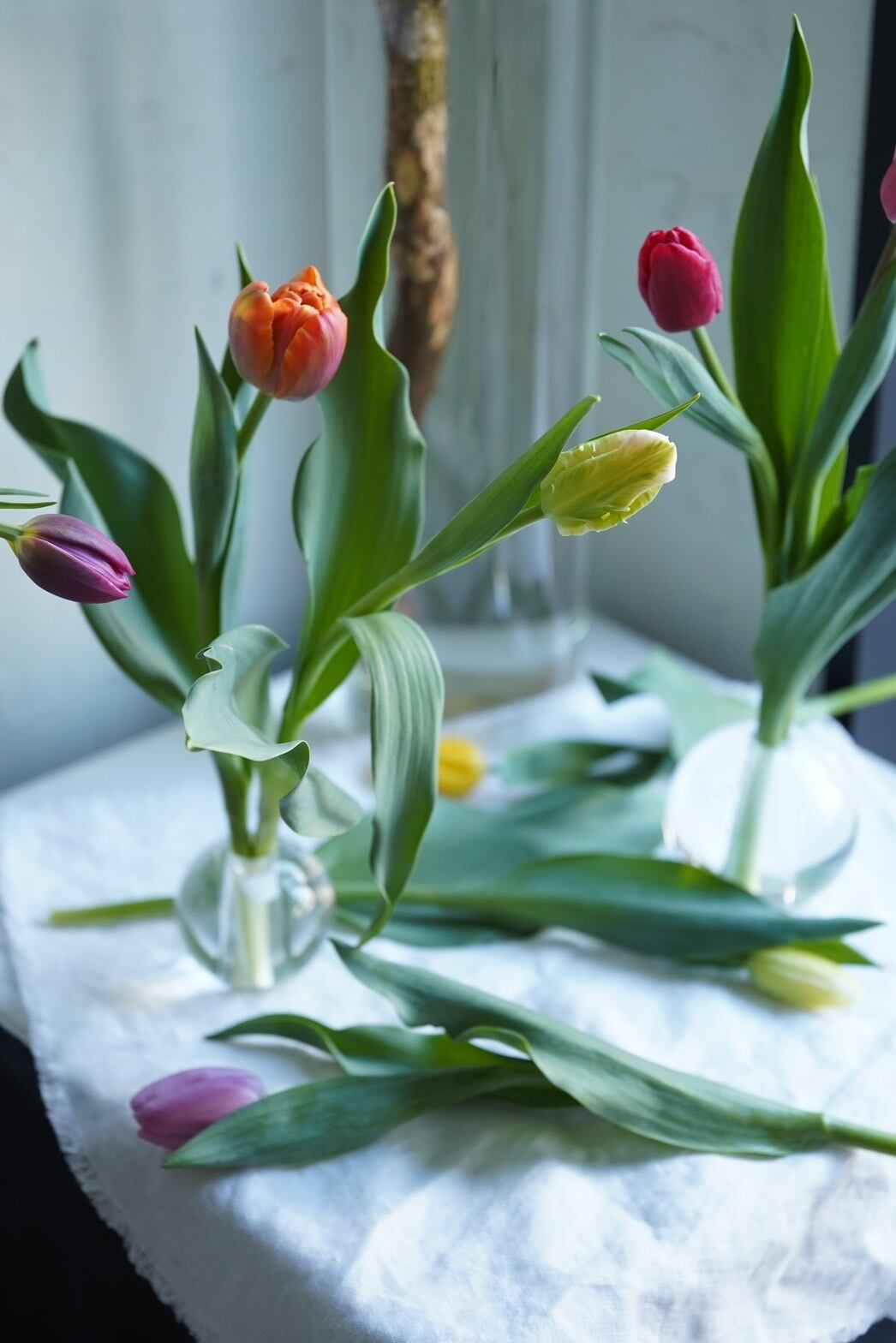 他のお花と混ぜてブーケを作る時には、葉っぱは落としてしまうんですが、葉っぱまで本当に綺麗なので、チューリップのみで楽しんで頂きたいです。