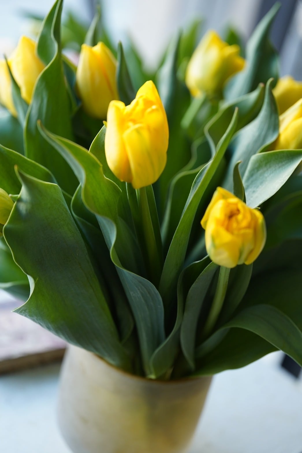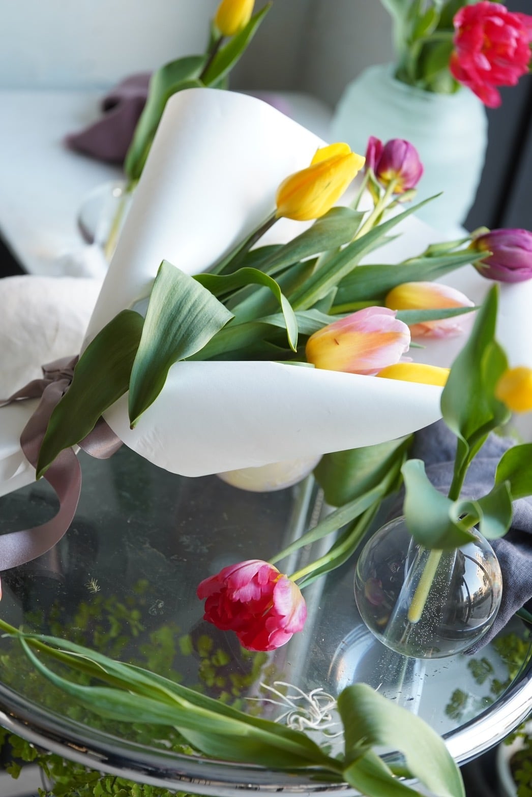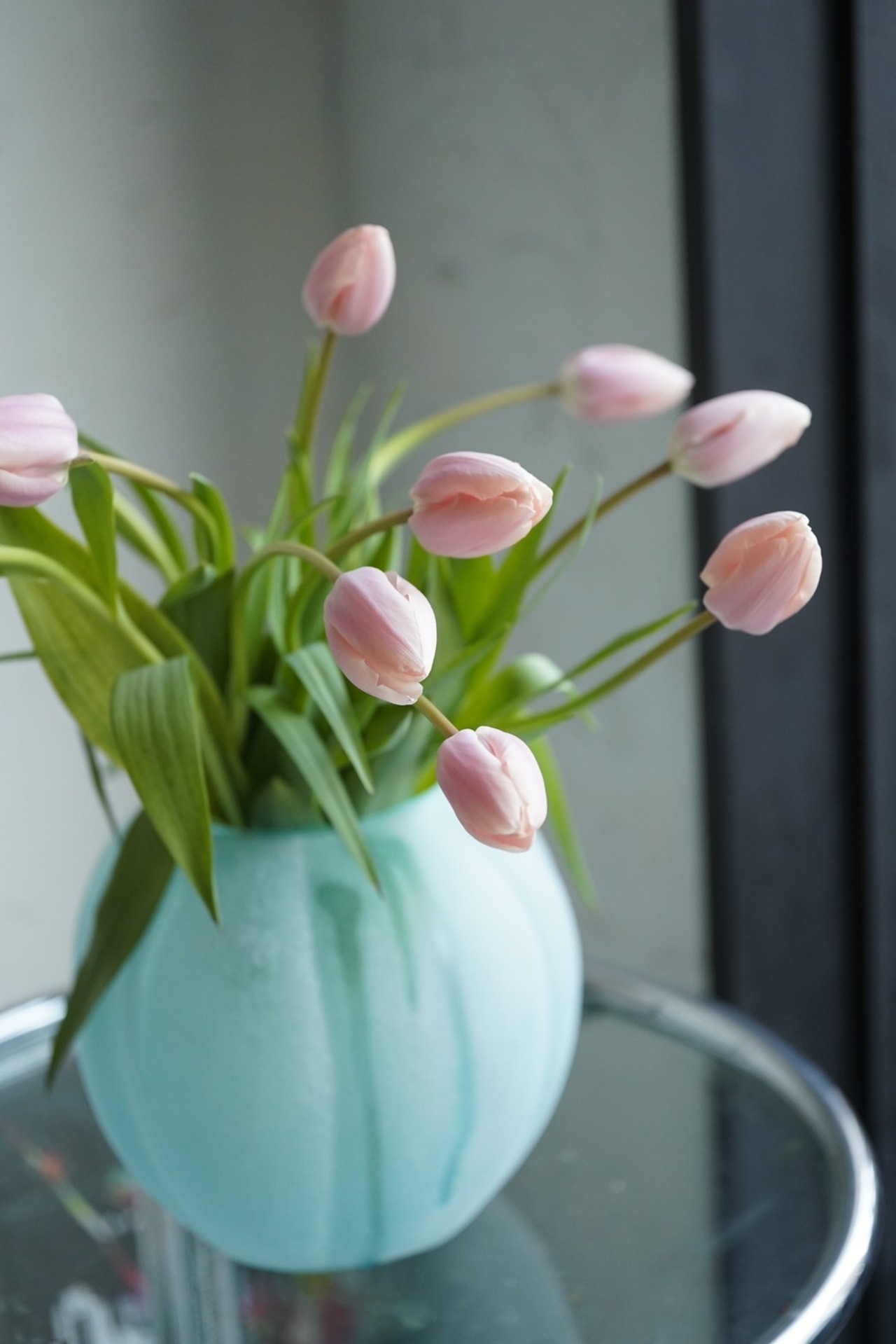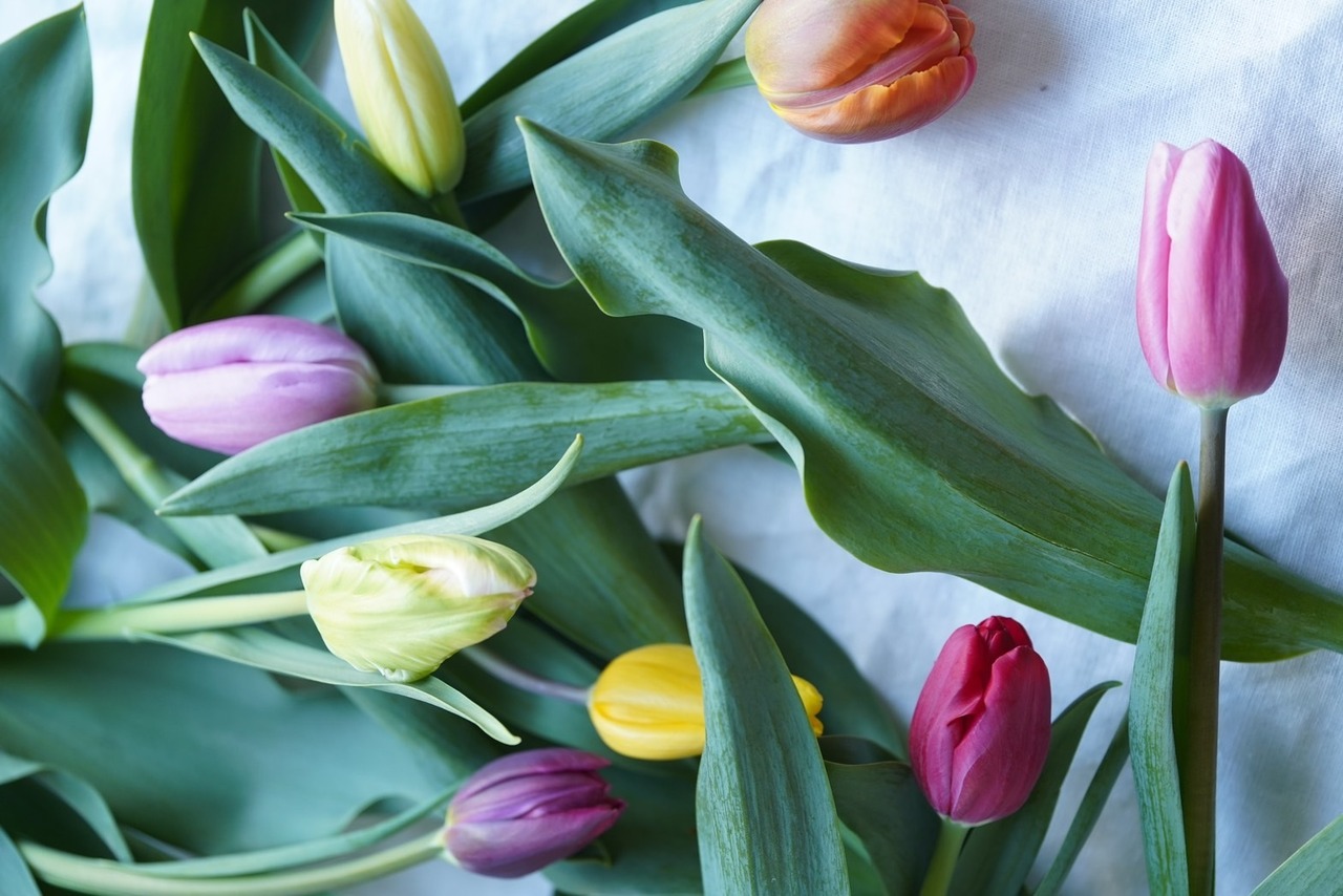 他のお花と混ぜてブーケを作る時には、葉っぱは落としてしまうんですが、葉っぱまで本当に綺麗なので、チューリップのみで楽しんで頂きたいです。